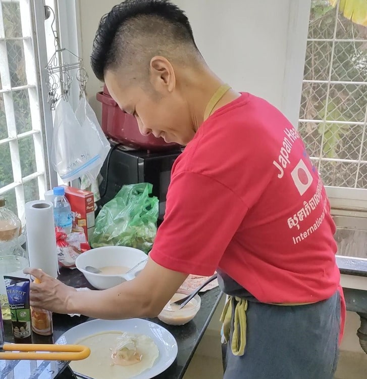 ほとんどがカンボジア料理のため、給食のない日曜日は寮のキッチンで日本の料理をよく作っています。