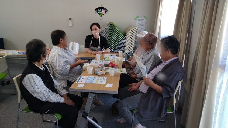 今回からは集会所に備え付けの血圧計を使い、住民さんに自ら血圧測定をしていただくなど、それぞれの自主性を伸ばしていけるような取り組みを開始しています。