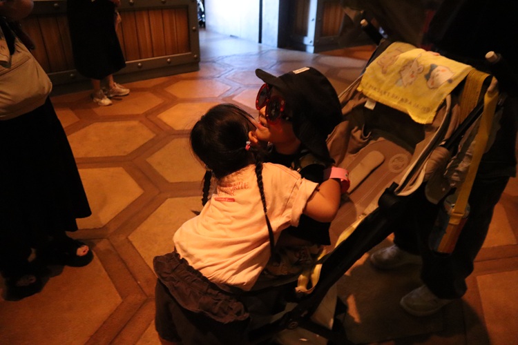妹ちゃんは身長制限で乗れないためスタッフとニコニコで冒険へ。