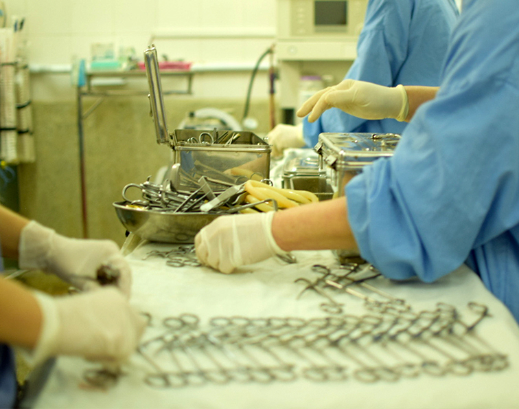オペ室は、オペ室内の掃除と消毒をして手術に備えます。