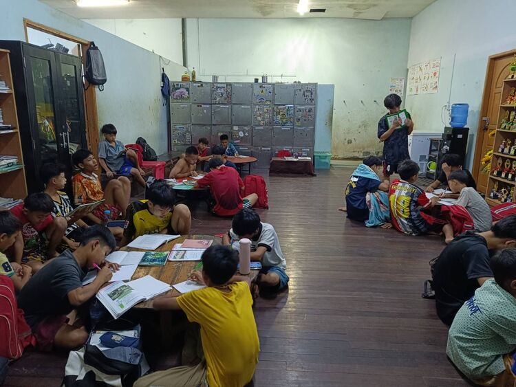ミャンマーの学校は2月が試験期間となります。Dream Trainの子どもたちもその試験のために、写真のように、みんなで一緒に勉強に励んでいました。