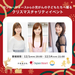 今回の寄付は、昨年12月1日(月)から12月14日(日)までに行われた企画「セント・フォースから小児がんの子どもたちへ贈るクリスマスチャリティイベント」によって集まりました。