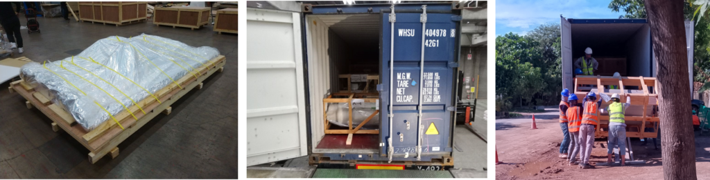 特に今回、新病院の手術室などに導入する医療ガス設備など「危険物」扱いの物資が多量にある中、同社の梱包技術によってしっかり安全管理を行い輸送できたことに加え、輸出入・通関手続きや、日本国内およびカンボジア国内での内陸輸送など、付随する様々な業務を一貫して対応いただき、安心・安全に医療物資を現地まで届けることができました。
